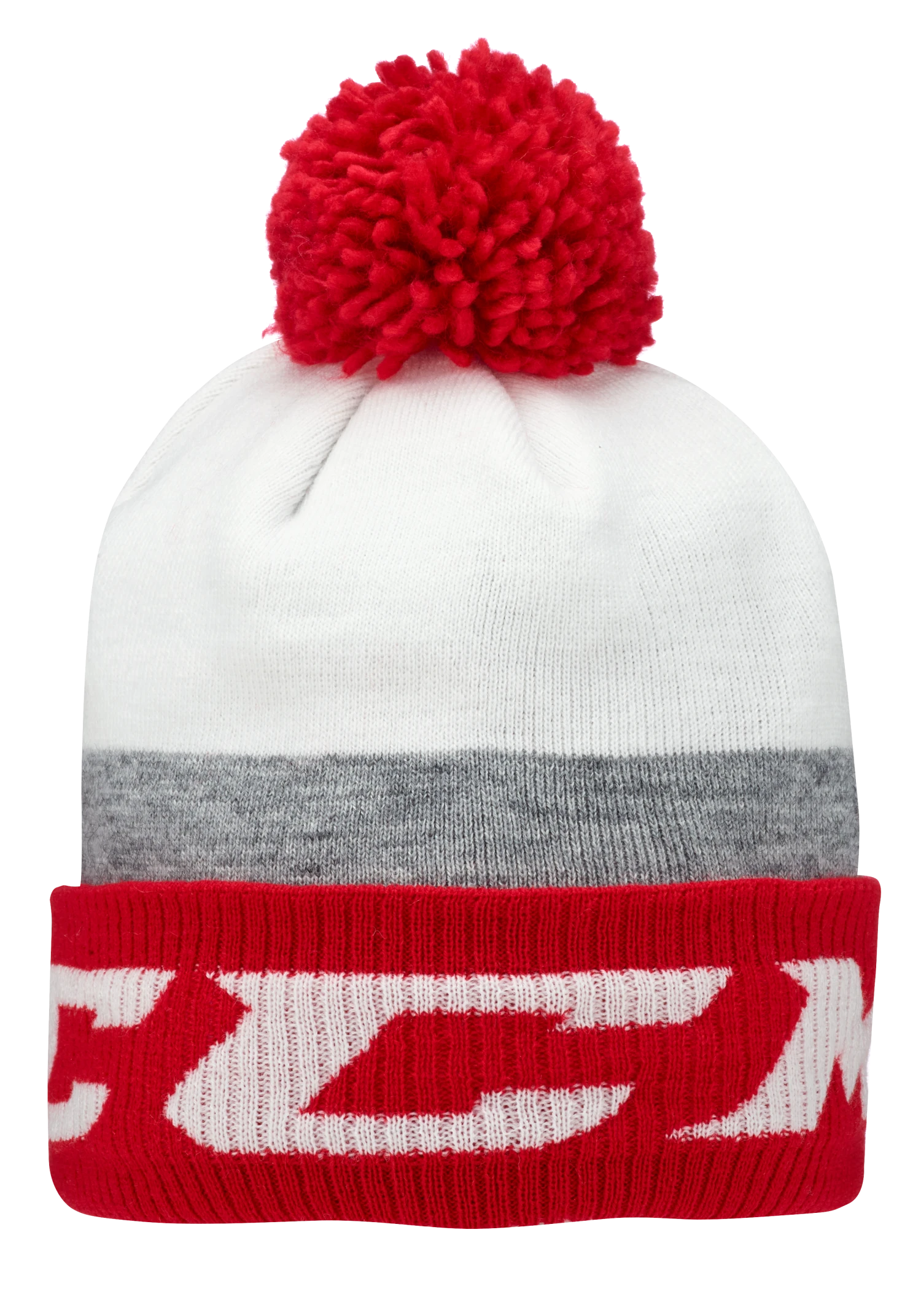 Jacquard knit stripes with a soft polar fleece lining and a fine fringe pom.